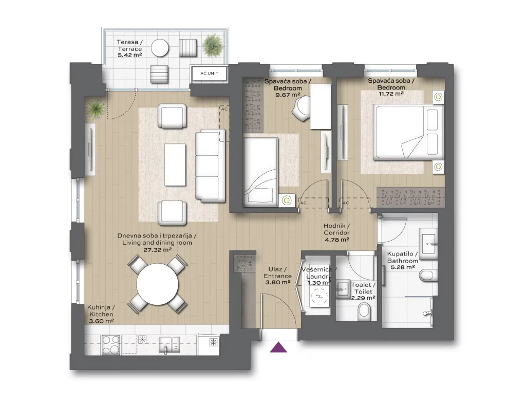 A perfect choice for young couples and families. This spacious and functional home offers everything needed for a comfortable and modern city lifestyle. Situated in a brand-new development in the heart of Savamala, it allows you to enjoy the ideal blend of urban living and green retreats. Just a few steps away, you’ll find shops, cafés, restaurants, and a wealth of recreational and entertainment options.